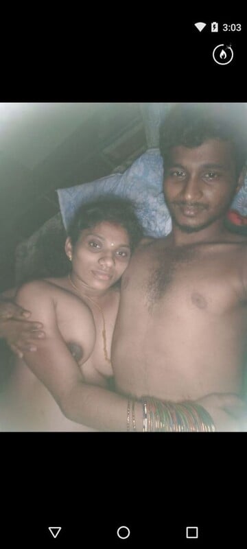 This newly married Tamil wife has lain naked next to her husband and hugged him as well! That made his dick stand upright, and he might want her to ride his dick! Do you want their sex photos as well? I want to see her getting fucked by her husband!