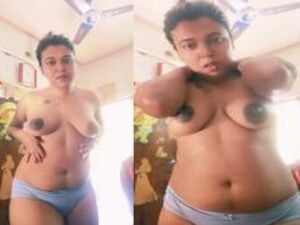 A cute girlfriend viral Desi video has her naked huge boobs showing. Watch this Desi mms scandal topless show now!