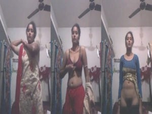 Starting to get excited in doing the dress change by this Desi naughty wife on selfie cam for her secret lover!